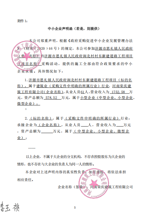 2、采购项目名称:济源市思礼镇人民政府涧北村村东新建道路工程项目