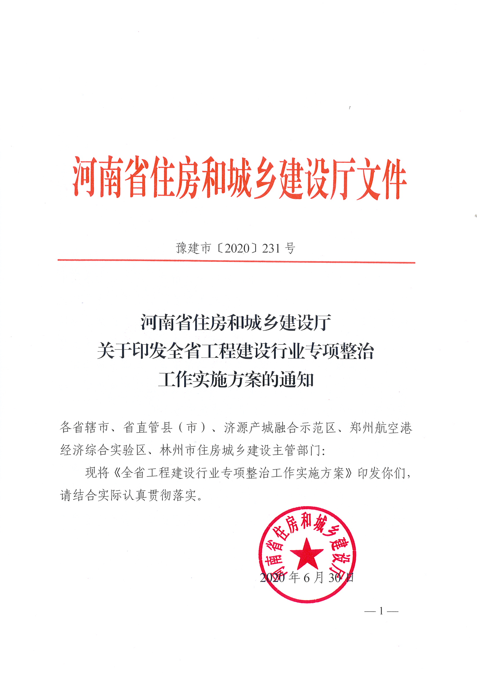 河南省住房和建设厅关于印发省工程建设行业专项整治工作实施方案的通知 豫建市[2020]231号.pdf
